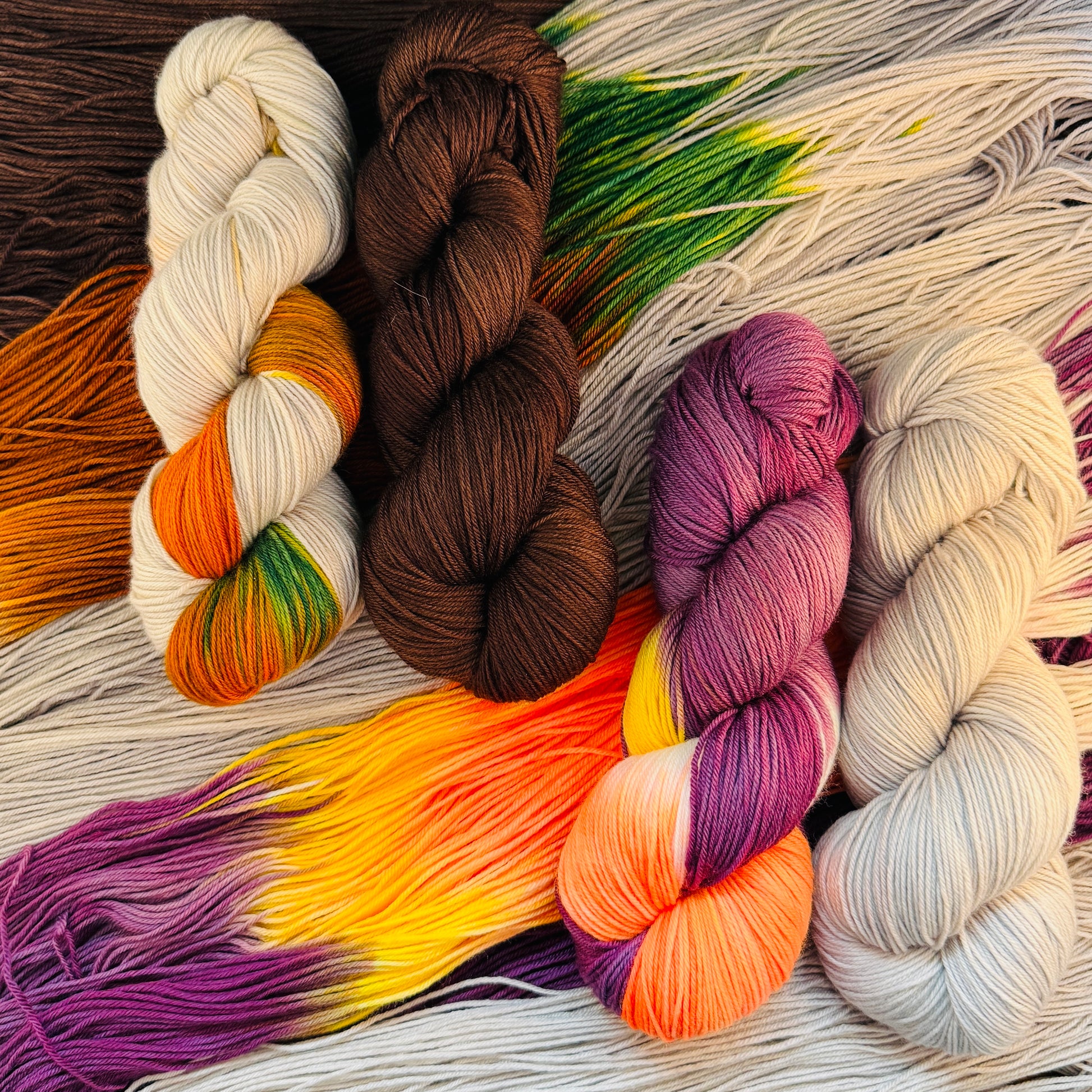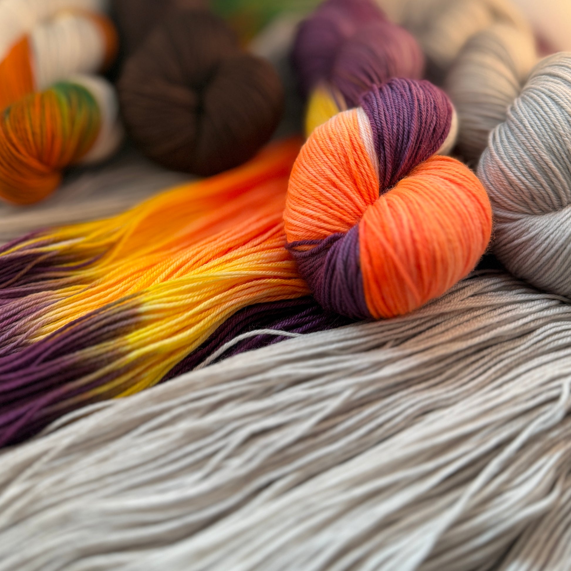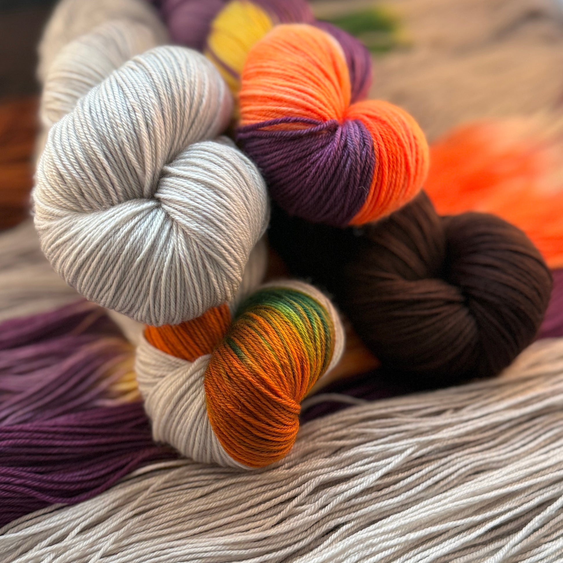 This bundle is dyed in small seasonal batches. Availability may be limited and tied to the Halloween season, so once it is gone, it may not return until next year.