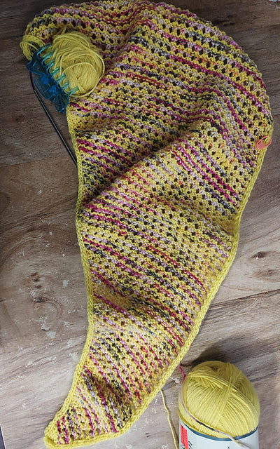 The Strook Shawl is the kind of project you can pick up at any time, whether you have an entire evening ahead of you or just ten minutes with your coffee. Its simple lace-and-garter rhythm makes it a wonderfully mindless knit, perfect for unwinding. Best of all, it’s a scrap buster: the stripe sections are ideal for showing off leftover yarns from your stash or for mixing small amounts of precious hand-dyed skeins with a main colour. Whether you go for a bold rainbow or a subtle gradient, every version becomes uniquely yours.