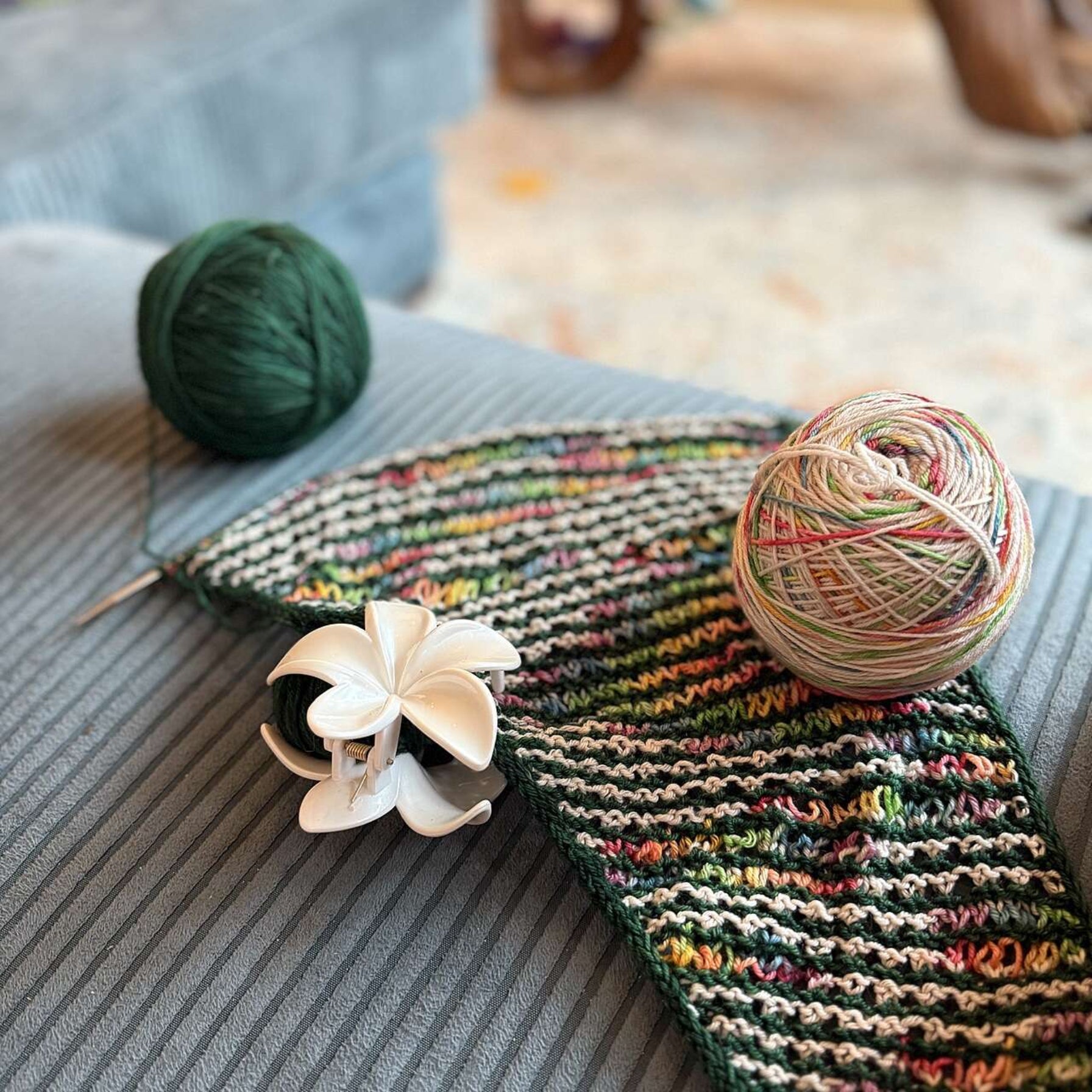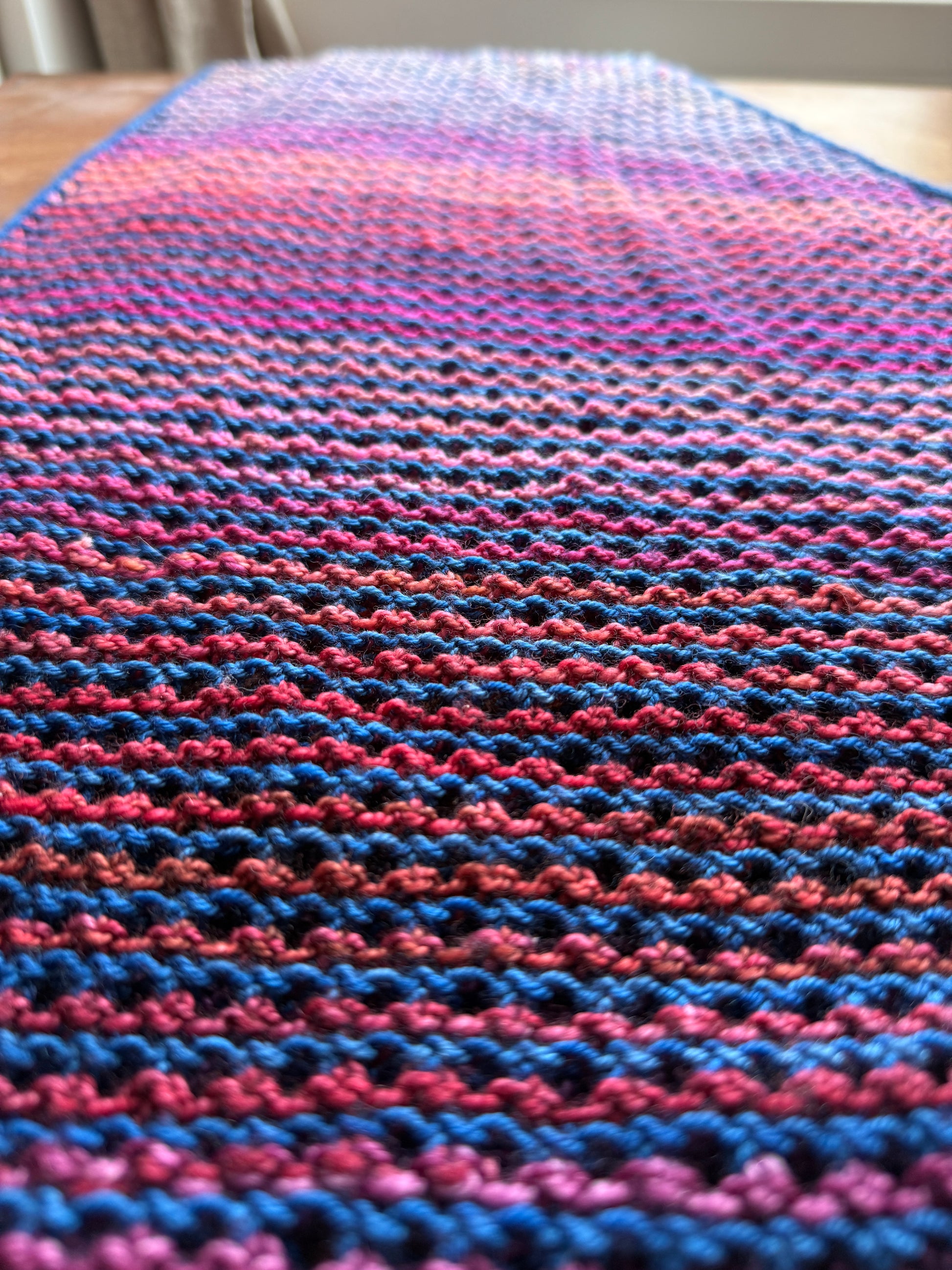You can easily customise the size of your shawl based on how much yarn you have available. If you’re running low on your MC or want to make the most of a special CC, simply adjust the number of pattern repeats. This flexibility makes it a great project for using up leftover skeins or working with precious hand-dyed yarns. Whether you have a little or a lot, you can shape the shawl to suit your yardage and preferences.